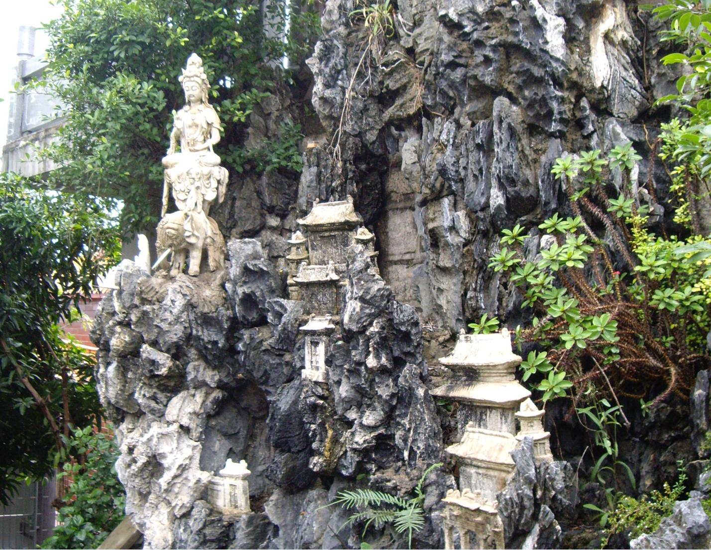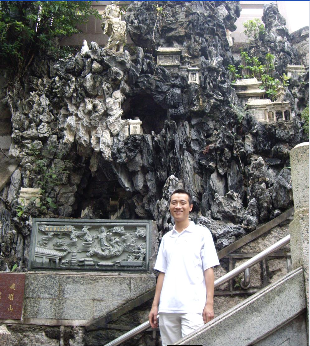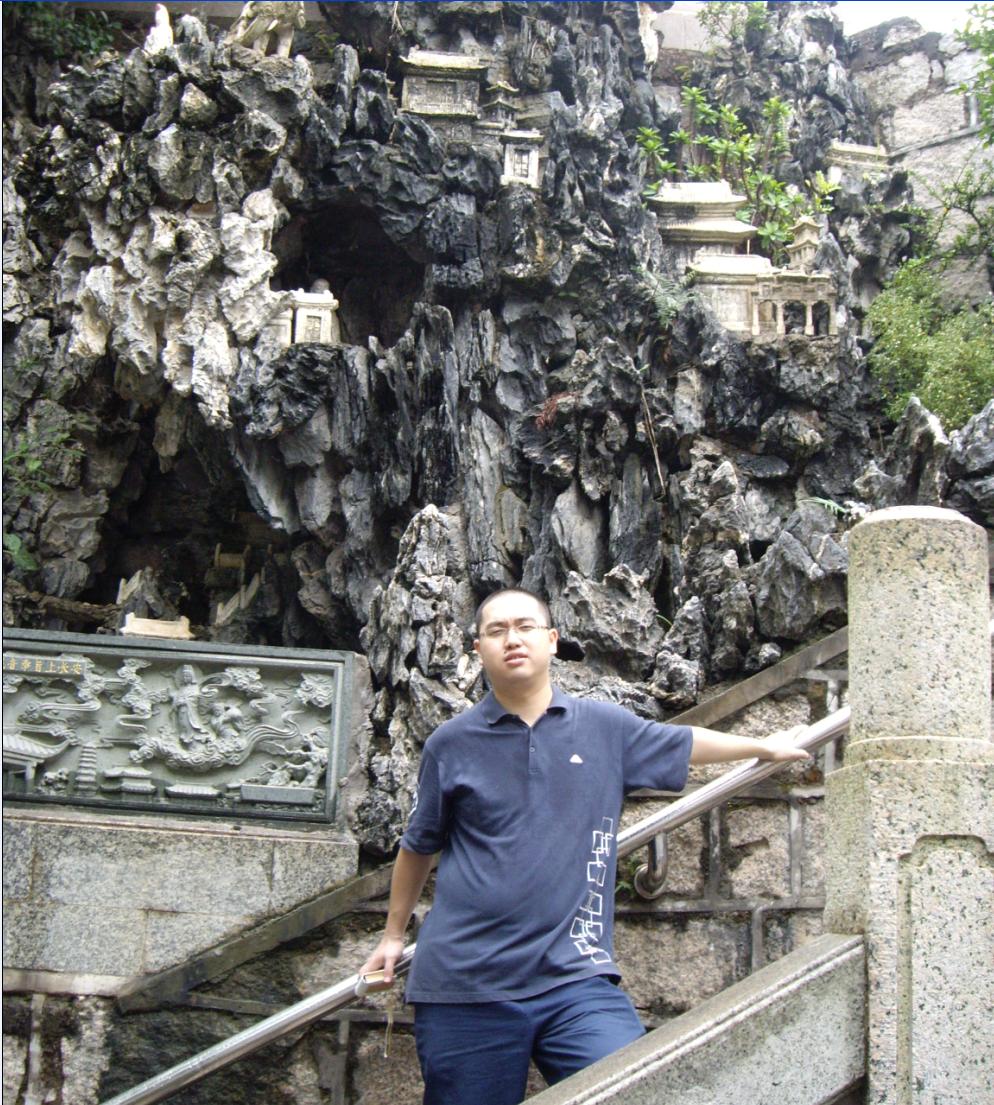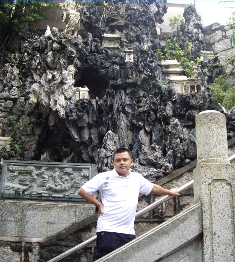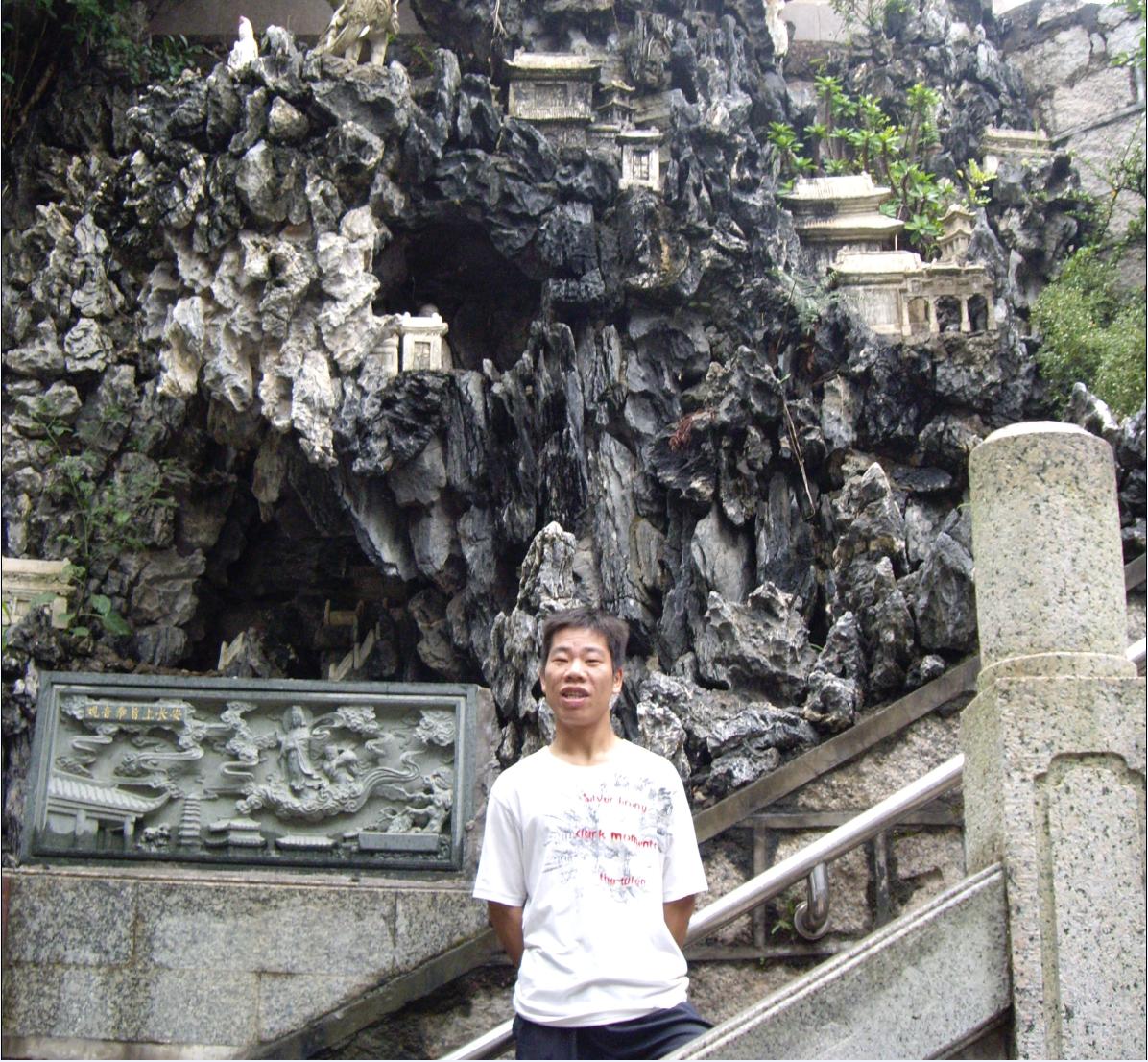 下山时看到一座很漂亮的假山,于是在假山边上留影