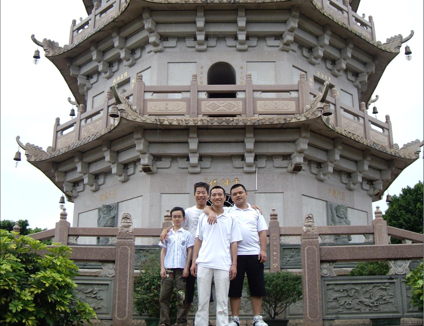 这是在寺庙的顶上,虽然天下着毛毛雨但是大家都挺开心的,没想到雨中的千佛塔更显得她的沧桑。